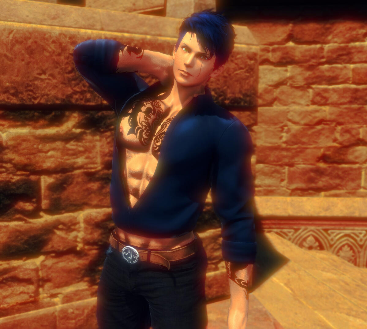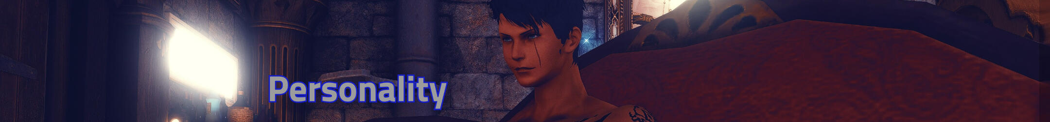 Kydronis comes across as an incredibly smug, arrogant but charming man, almost always seen with a relaxed smirk on his face. He teases and pushes people’s buttons and riles them up in a way that keeps people at arms length, emotionally. Despite this, he’s very considerate, and if asked to stop, will do so; he believes consent is essential in things like that. The truth is that Ky has a deep sense of anger and loss, one that he has forfeited his very soul to save others from feeling. Knowing that his life could end at any time, and that when it does his soul won’t make it to the Lifestream, Ky is both nihilistic and constantly pulled to enjoy every moment he can, making him also very hedonistic.